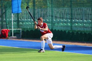Do tego ćwiczenia potrzebujesz 1 piłkę hokejową oraz 5 pachołków. Wykonaj prowadzenie piłki slalomem pomiędzy pachołkami, tak aby naprzemiennie piłka i nogi znajdowały się po przeciwnych stronach pachołka. Mijając ostatni pachołek zawróć i powtórz slalom.