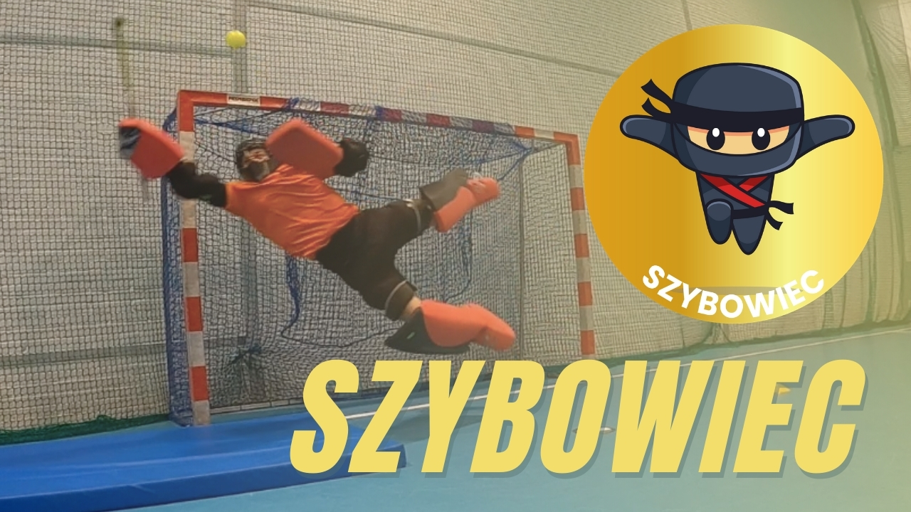 Do tego ćwiczenia potrzebujesz: 3 piłki hokejowe, 1 pachołek, partnera oraz materac (opcjonalnie). Rzucając się, wykonaj 3 wybicia piłki, kijem lub rękawicą. Przed interwencją, dotknij kijem pachołek.