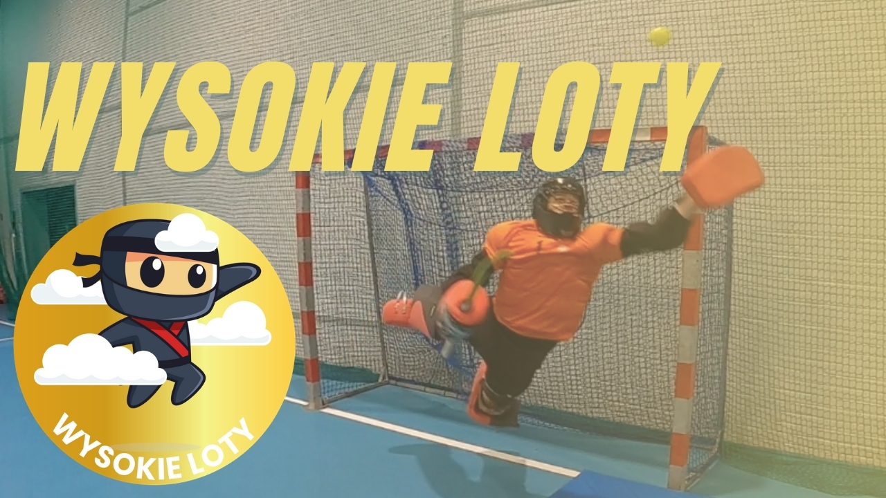 Do tego ćwiczenia potrzebujesz: 3 piłki hokejowe, 1 pachołek, partnera oraz materac (opcjonalnie). Rzucając się, wykonaj 3 wybicia piłki lewą rękawicą. Przed interwencją dotknij lewą rękawicą pachołek.